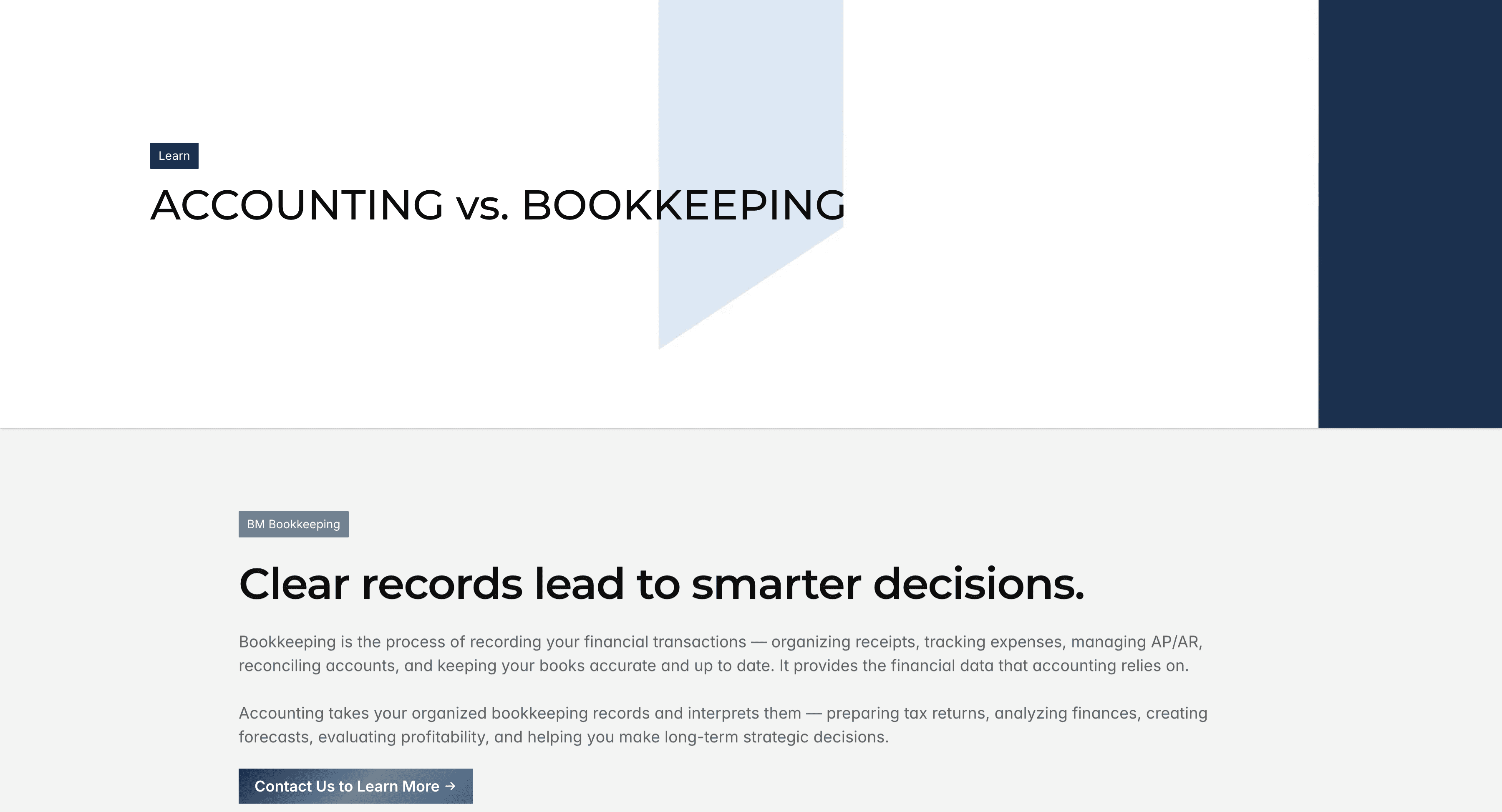 See how BM Bookkeeping can organize your books and make tax season easier than ever.